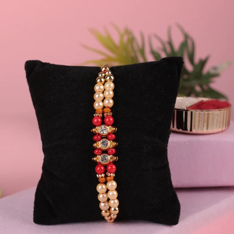 Two Layer Pearl Rakhi With Cadbury Dairy Milk Chocolate